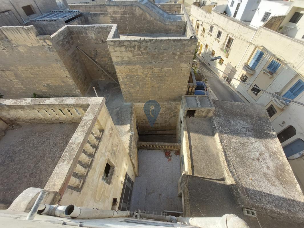 Located in the tranquil town of Dingli, this unique corner terraced house offers an expansive façade and a generous footprint of approximately 234 square metres. Being offered in an unconverted state, the property provides exceptional potential for transformation and personalisation. The layout includes an entrance hall, a living room, a dining room, a separate kitchen with dining area, seven bedrooms—three of which enjoy private balconies—two bathrooms, two internal yards, a cellar, two storage rooms, a large washroom, and a spacious roof terrace. A two-car garage with high ceilings, which can easily be interconnected to the main house, is also included in the price. This freehold property is being offered with full airspace, making it an excellent opportunity for anyone seeking a substantial home or redevelopment project in a quiet yet well-connected location.