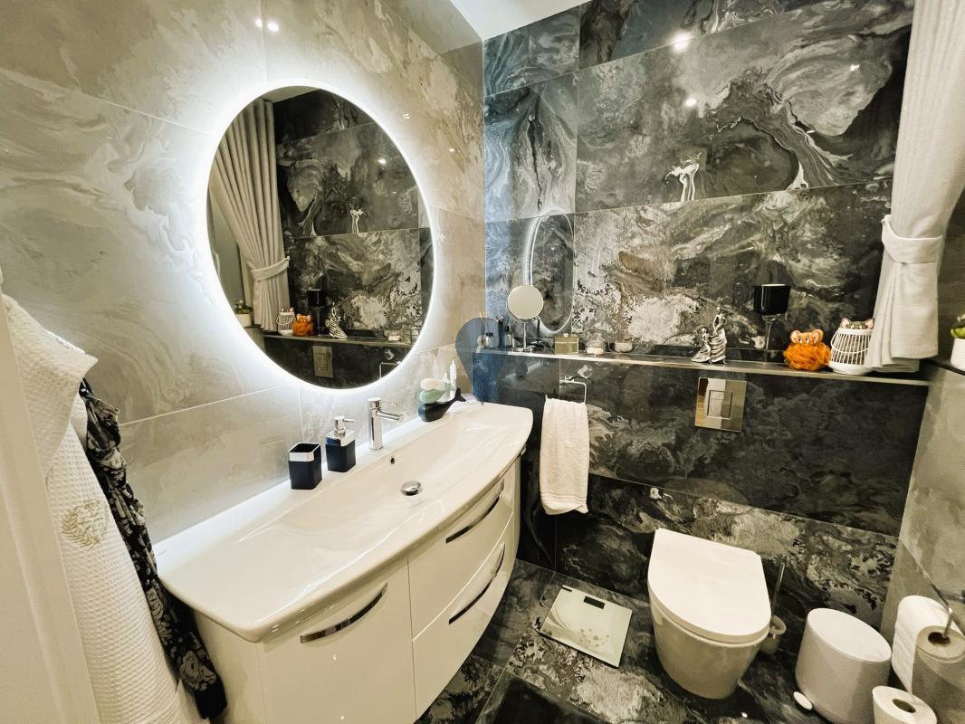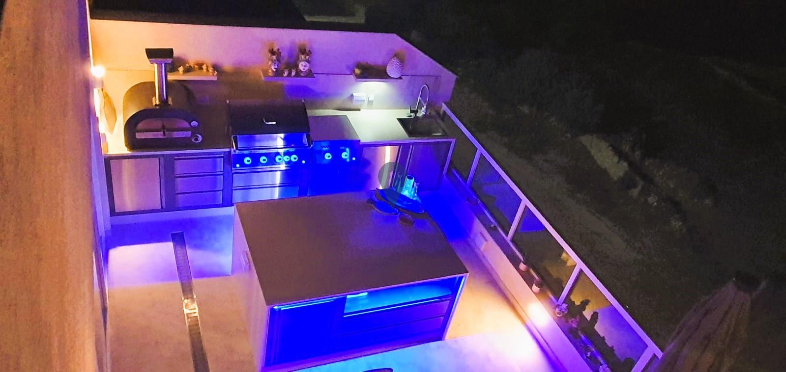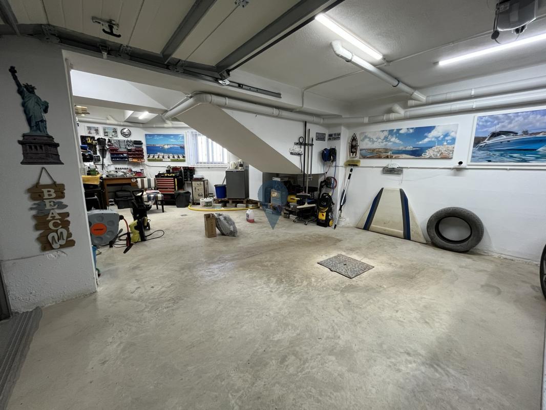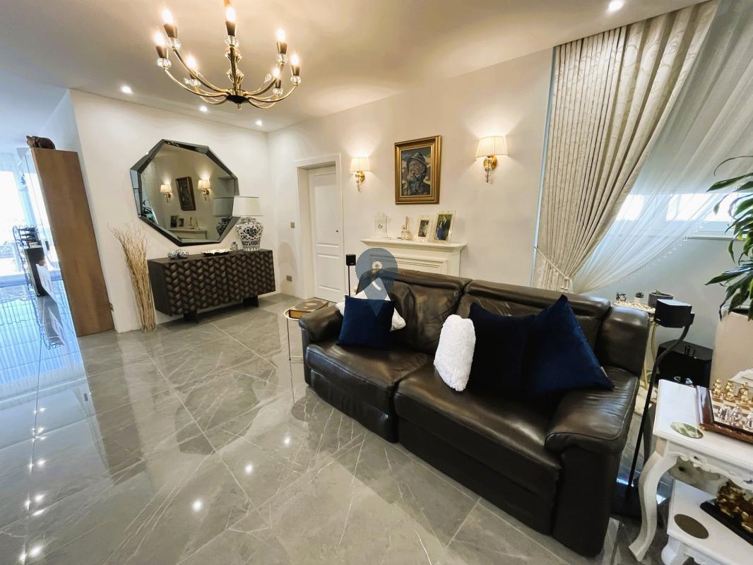 The expansive outdoor terrace is an entertainer’s dream, featuring a fully equipped outdoor kitchen by Napoleon complete with a fridge, pizza oven, BBQ, and grill setup, alongside an outdoor sofa and a luxurious Dolphin model Jacuzzi. Sustainability is also a key feature, with a 14-panel photovoltaic system generating approximately 51 units daily.