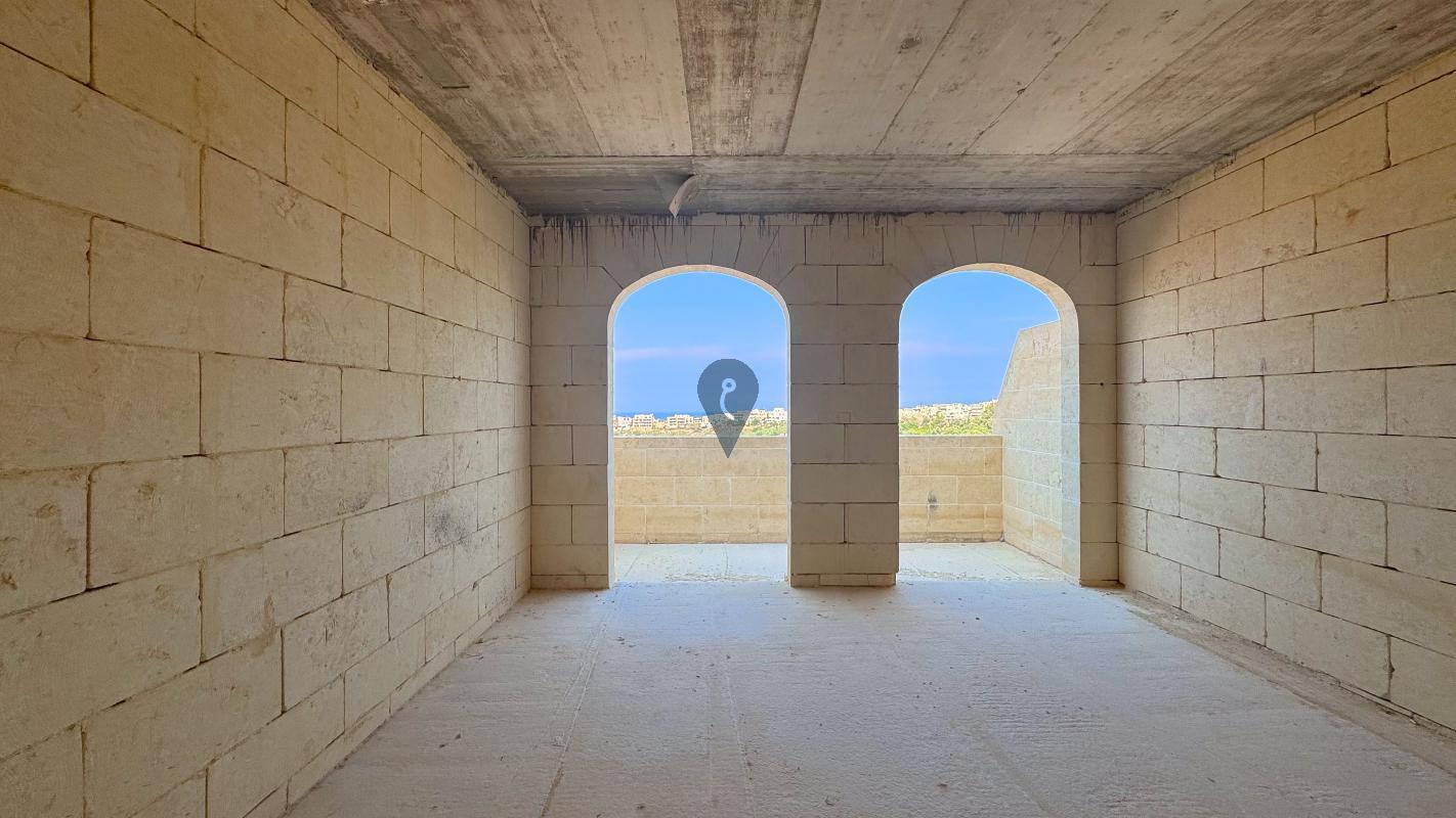 XAGHRA - Gozo, Newly built limestone terraced house located in a UCA area on the edge of the village, enjoying wide valley and distant sea views. This semi-finished property, with its façade and exterior pointing already completed, offers a fantastic opportunity to finalize to your taste. The house features a finished 6-car basement garage with a door, a spacious open-plan living, kitchen, and dining area opening onto a large yard with a pool and deck area, as well as a ground-floor toilet and domestic store. The first floor hosts three bedrooms, two with en-suite bathrooms, one with a back terrace overlooking the stunning views, plus an internal courtyard that floods the home with natural light. At roof level, a washroom and two generous terraces offer spectacular vistas of the surrounding countryside and sea. Combining space, character, and prime location, this freehold home is ideal as a family residence, holiday retreat, or rental investment.