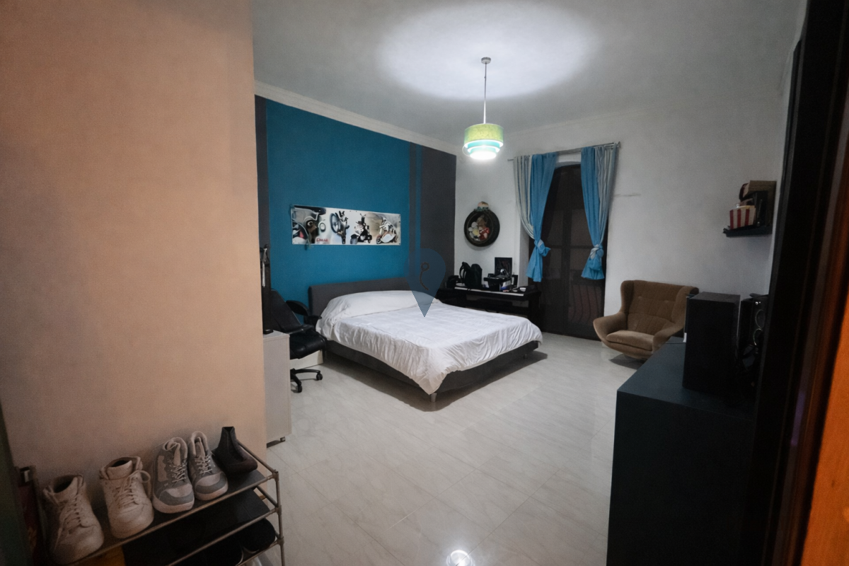 A marble staircase leads to the first floor, where one finds three generously sized double bedrooms, including a master bedroom with ensuite facilities, a main bathroom, and a large rear terrace. At the roof level, there is a very spacious washroom.