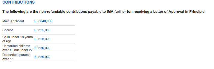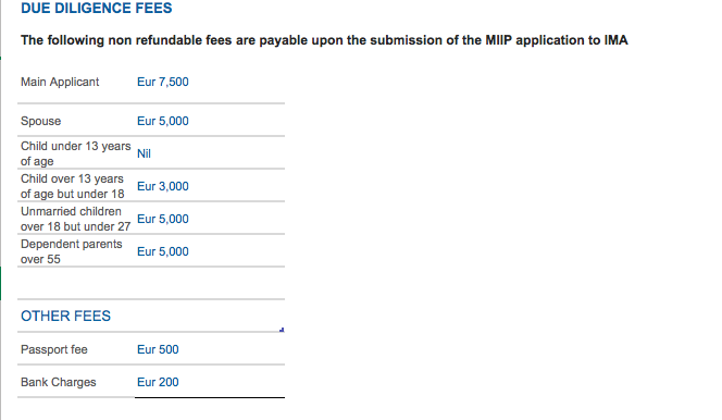 - Contribution to be paid to Government of Malta (less initial non-refundable deposit)