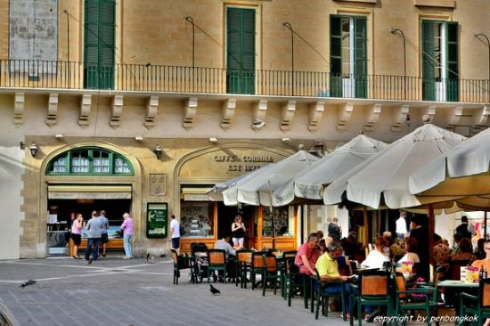 To eat, you can find many restaurants like the cafe Cordina! This restaurant has a nice outdoor terrace with a view of the beautiful bibliotheca of Valetta but also year interior reminiscent of traditional British coffees!