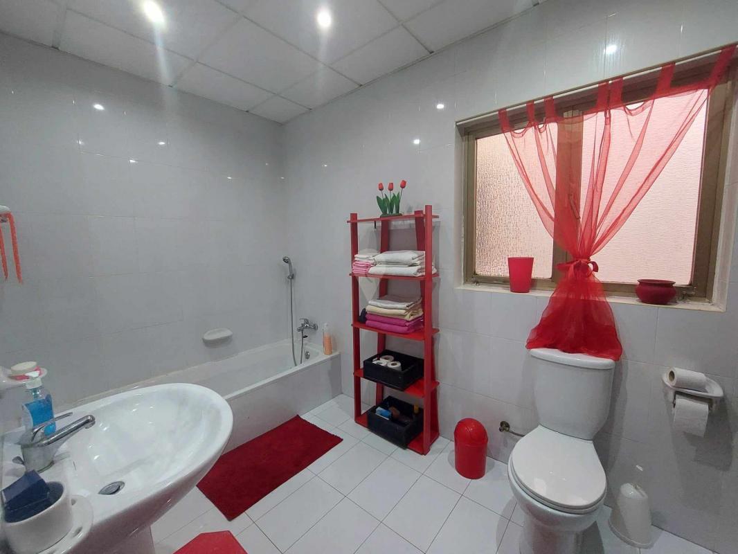 A nice porch gives access to the main entrance and the garage respectively. At ground floor level, this terraced house comprises a hallway that leads to a separate living room, a bathroom, and a large kitchen/dining room which leads to two yards – an internal yard and a large back yard. Going up to the first floor, one finds three very spacious, double bedrooms (main with a balcony and window overlooking the porch) and another guest bathroom. Finally, upon going up to the second floor one finds himself in a very well-sized washroom that leads to a large roof. The property is being offered fully furnished, freehold, and including airspace.