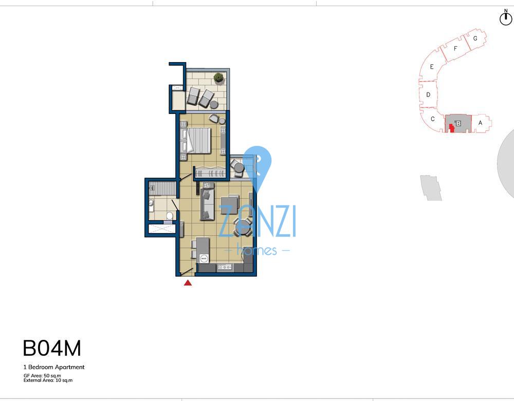 This 8TH floor APARTMENT's 50 sqm floor area features a kitchen, living and dining area leading out onto a 10 sqm front terrace enjoying town views, one bedroom and the main bathroom.