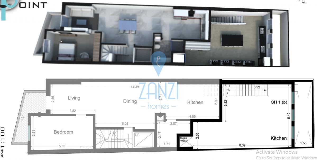 The shop has a total area of 179 sqm comprising of 136 sqm on the ground floor and 43 sqm on the floor above.