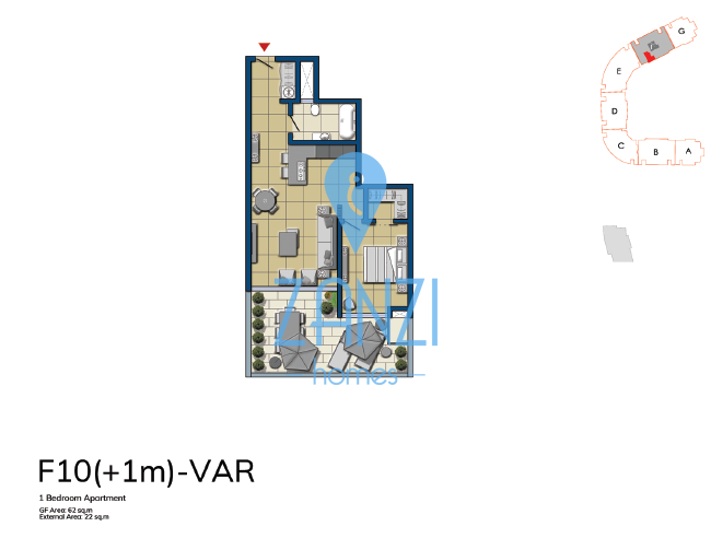 This 3rd floor APARTMENT's 62sqm floor area features a kitchen, living and dining area leading out onto a 22sqm front terrace enjoying views, one bedroom and the main bathroom.