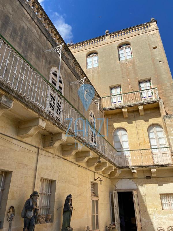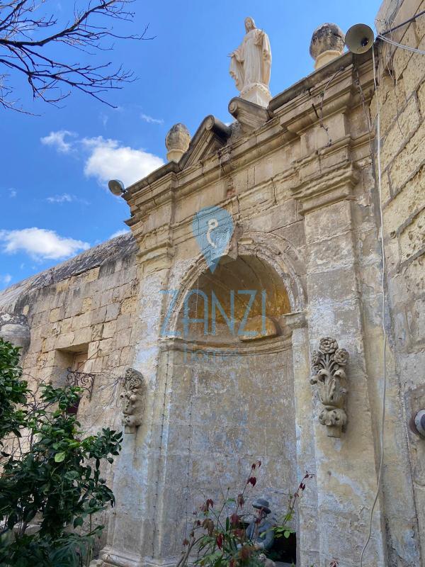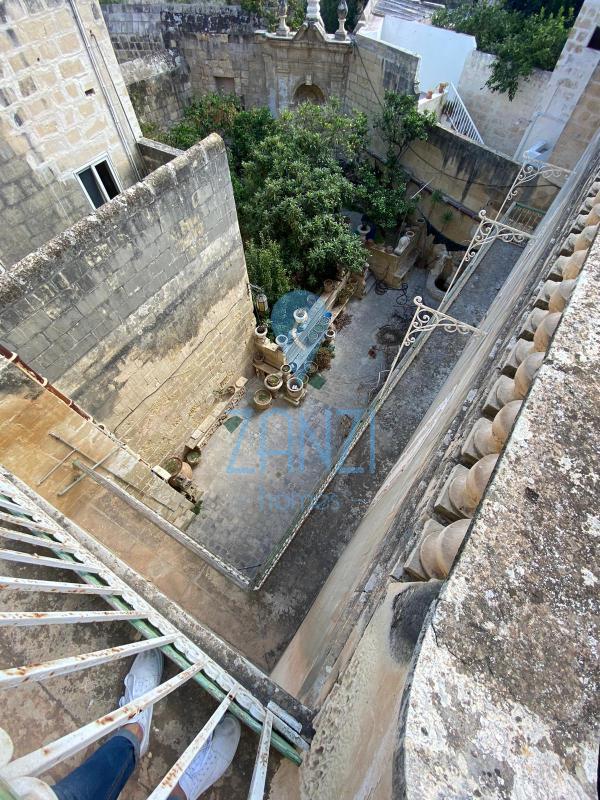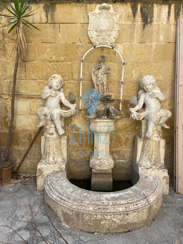 QORMI | House of character in Qormi. Found on a corner in the piazza and exactly in front of it, you find a church a great factor of this property is the location which is as central as it gets. Internally it consists of 27 rooms divided on 4 floors with a street level 1 car garage and 2 large gardens which consist of a large variety of different fruit trees, boasts traditional balconies and vast 360-degree views from the roof, consists of a beautiful internal staircase and rooms are filled with intricate design and precision. Magnificent stone carvings and fountains in a spacious courtyard have lots of privacy with not many overlookers. This property is great for a boutique hotel business. It is being sold unfurnished and freehold.