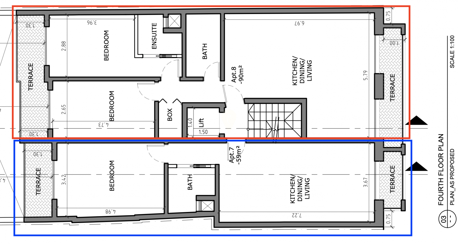 GZIRA - perfectly located in Gzira, close to all amenities one-bedroom apartment (marked in blue) on the fourth floor, being the fifth floor from the street level. The property comprises an open plan kitchen living dining, a main bedroom, a main with en-suite, a main bathroom, a front balcony, and a back balcony. This project is currently under construction, offering freehold and semi-finished, including bathrooms and internal doors. Optional car spaces are available at an additional price.