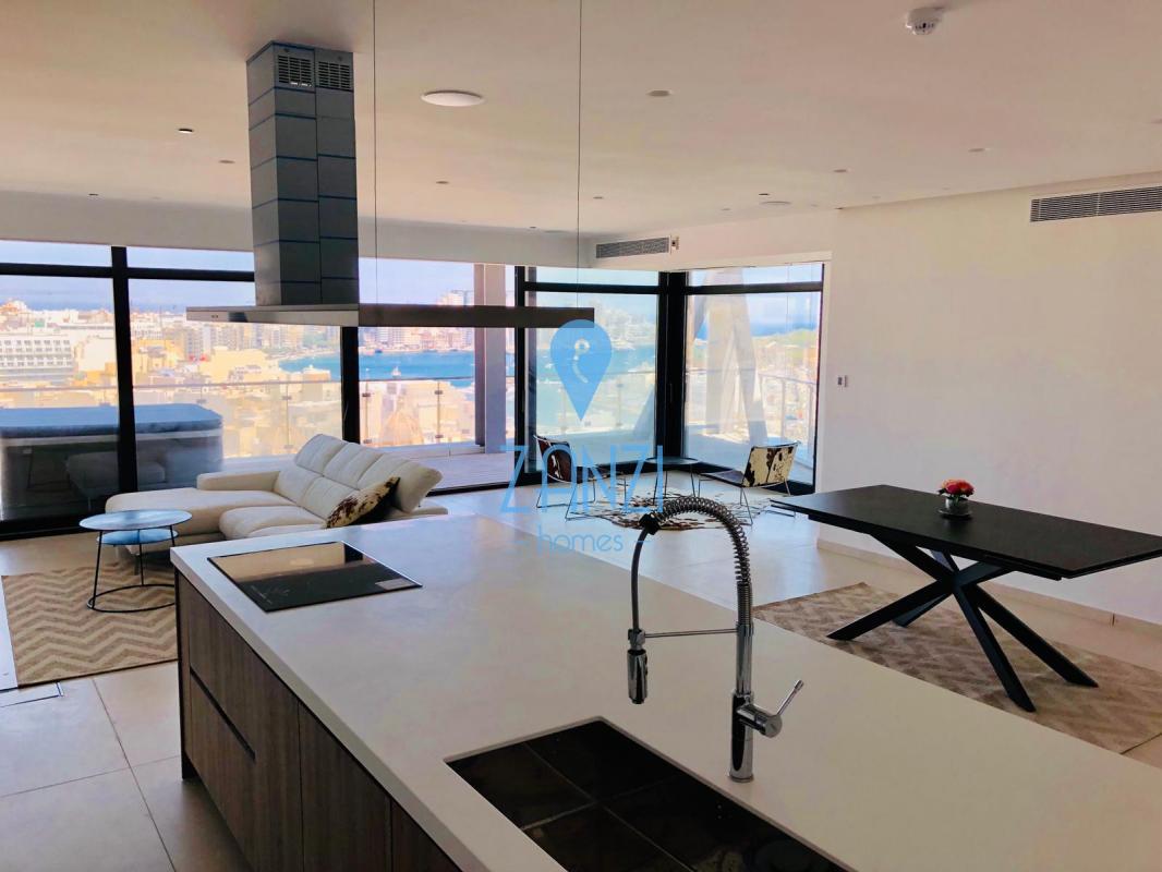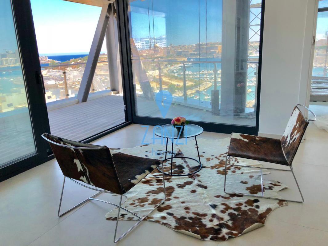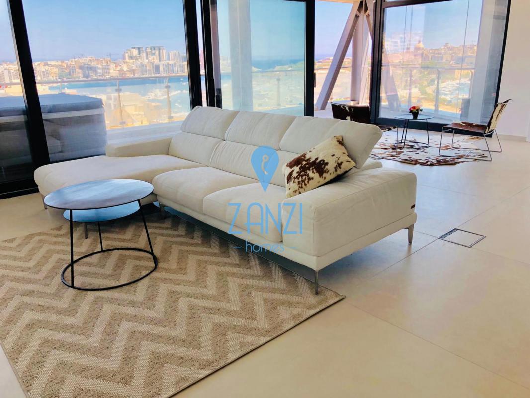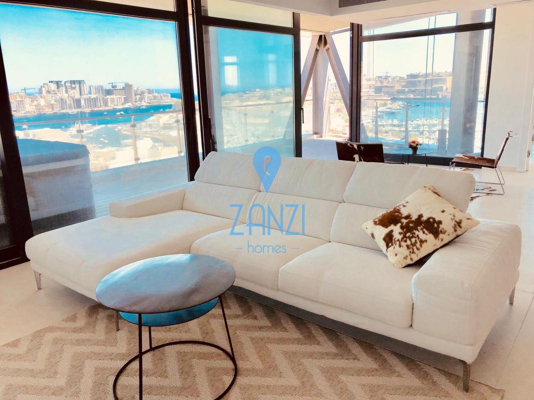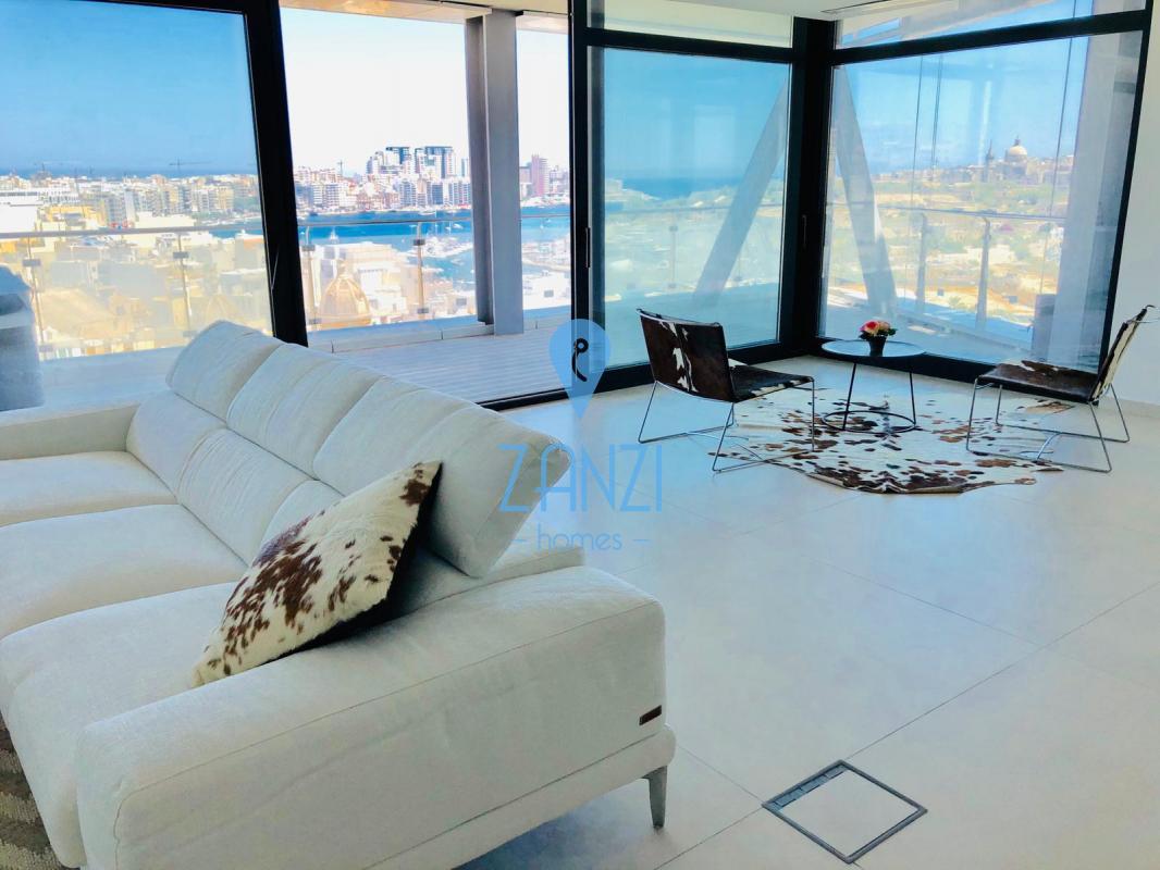 GZIRA- New on the market we find this 275sqm modern APARTMENT on the 11th floor. Layout is in form of a spacious open plan leading to a beautiful terrace, main bathroom and utility room. Three double bedrooms all with en-suite and all leading on to another terrace with views of Valletta and Manoel Island. This stunning apartment comes with VRF airconditioning throughout, electric blinds, surround system, Wifi network, intelligent lighting, underfloor heating in all bathrooms, served with lift and freehold. Property also includes an inter-connecting car space. Viewing highly recommend!