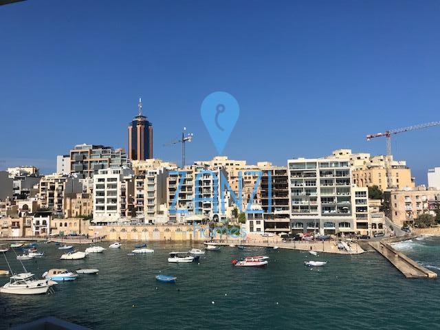 St. JULIANS - A SEA FRONT Fourth floor Two bedroom apartment in the heart of St.Julians. Accommodation comprises an open plan fully equipped kitchen/living/dinning area leading to a balcony having outstanding open sea views, two double bedrooms (main with en-suite), second bedroom also includes a Maltese traditional balcony, main bathroom and a utility room. Apartment is sold fully furnished and ready to move in. A 2 car space is also included in the price and interconnected by lift.