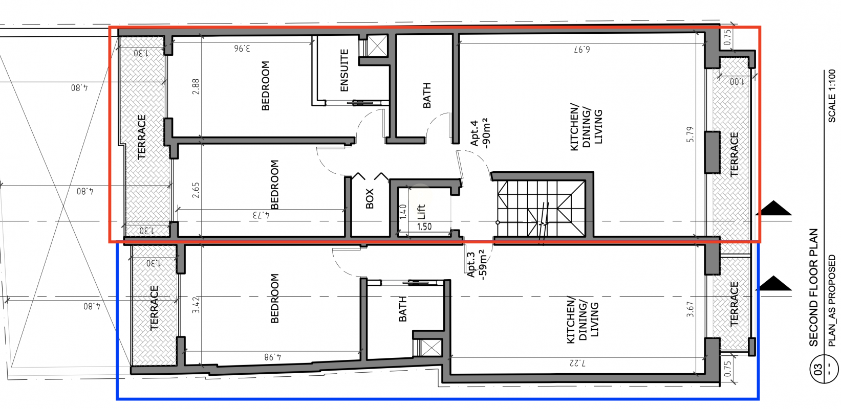 GZIRA - perfectly located in Gzira, close to all amenities one-bedroom apartment (marked in blue) on the second floor, being the third floor from the street level. The property comprises an open plan kitchen living dining, a main bedroom, a main with en-suite, a main bathroom, a front balcony, and a back balcony. This project is currently under construction, offering freehold and semi-finished, excluding bathrooms and internal doors. Optional car spaces are available at an additional price.