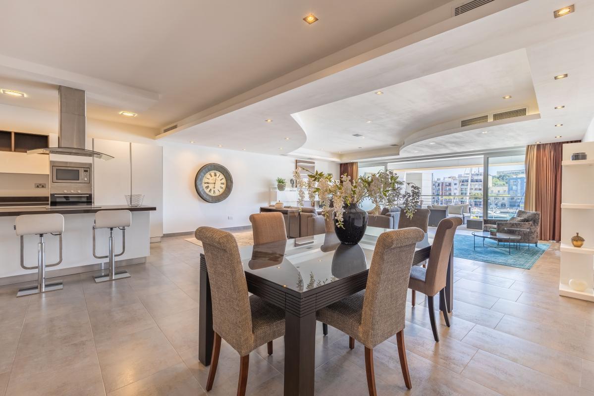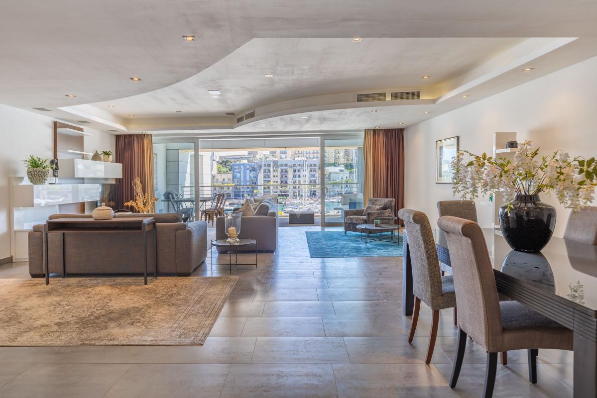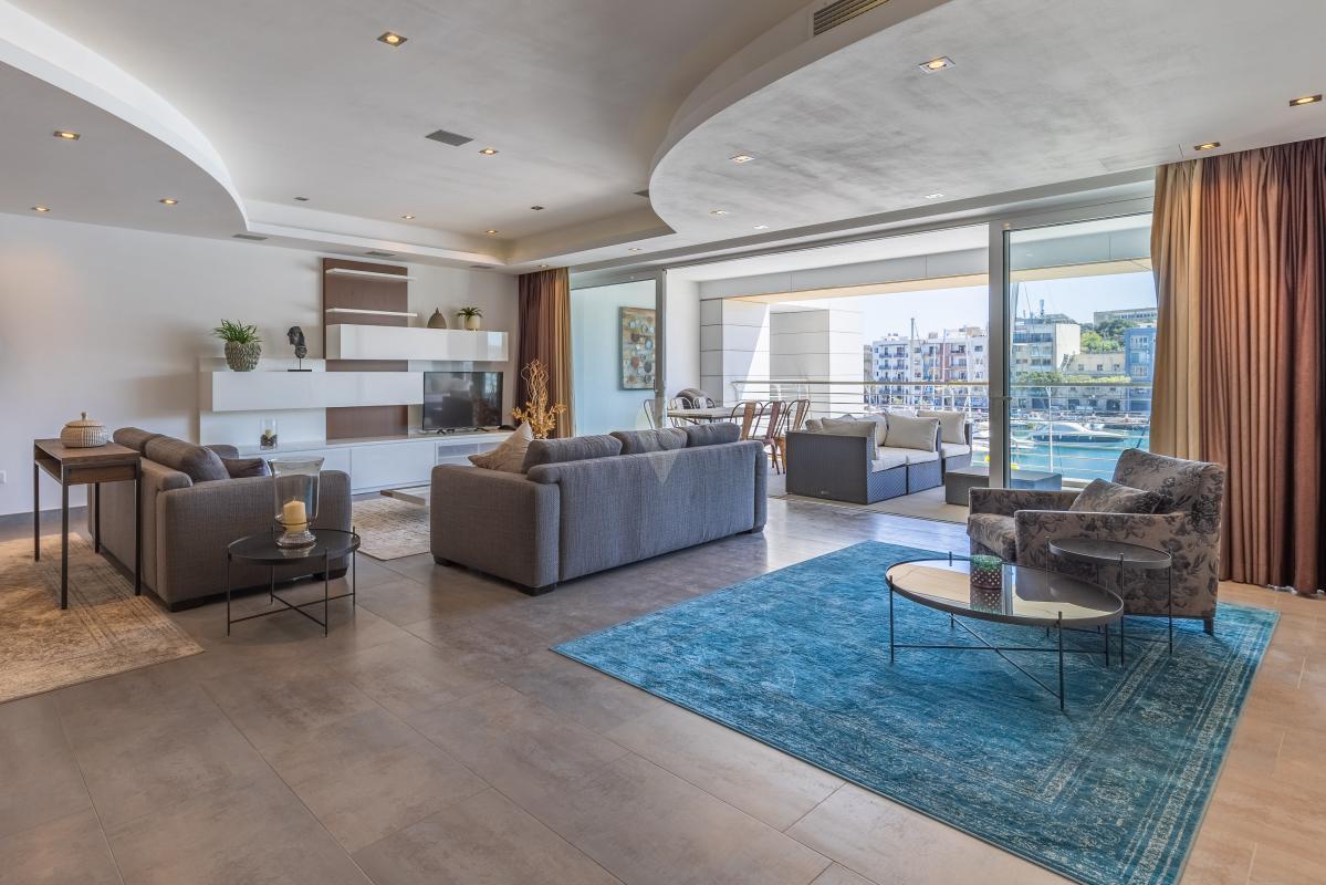 TA' XBIEX - Designer-finished, seafront Apartment overlooking the yacht marina and Valletta bastions, comprising a wide entrance hall leading onto a larger-than-usual open plan living/dining and a fully fitted and accessorized designer kitchen/breakfast area. These rooms extend onto a spacious front terrace enjoying captivating views of the Ta'Xbiex Yacht Marina stretching to Valletta. This South facing Apartment boasts an impressive overall area of 285 sqm and consists of three double bedrooms all en-suite, the master bedroom is complete with its en-suite bathroom and walk-in wardrobe. The property also consists of a guest toilet/spare bathroom and a washroom. Extras include air-conditioning and an intelligent lighting system throughout. This one-of-a-kind property is finished to the highest of standards. The apartment comes with a large one car space included in the price.