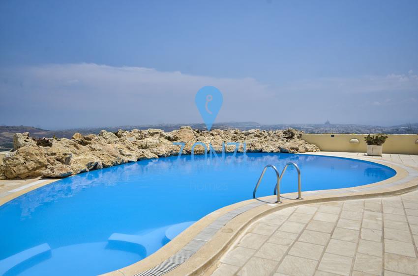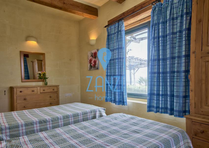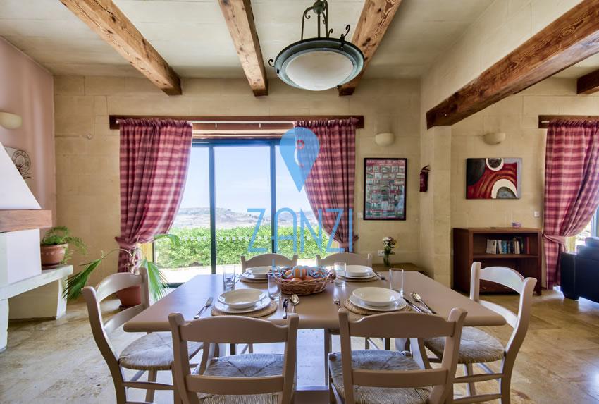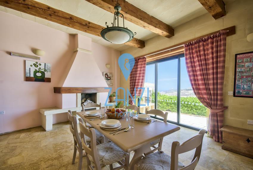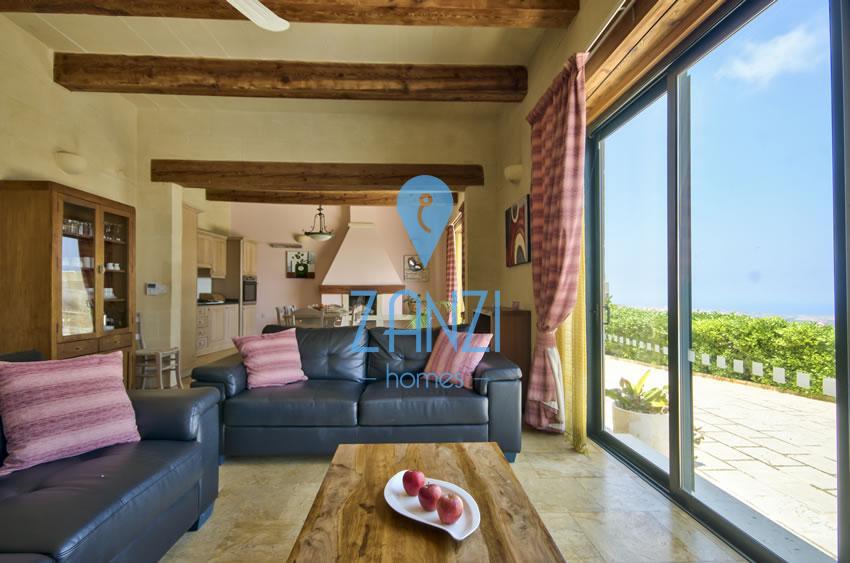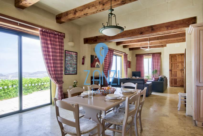 SANTA LUCIJA, Gozo - Set in an elevated position and commanding incredible views of the island (almost 360 degrees), this superb property has been renovated to the highest standard and is ideally situated to enjoy the welcoming summer breeze. The modern fitted kitchen is open plan with the dining area and lounge, and all have large picture windows from which to enjoy the unobstructed views. The large pool boasts a rocky waterfall feature and also enjoys the views. The whole property is enclosed by a wall for privacy and there is a covered terrace area with dining furniture for alfresco dining. With full double glazing and an open fieplace, this farmhouse is also very comfortable during the winter season.