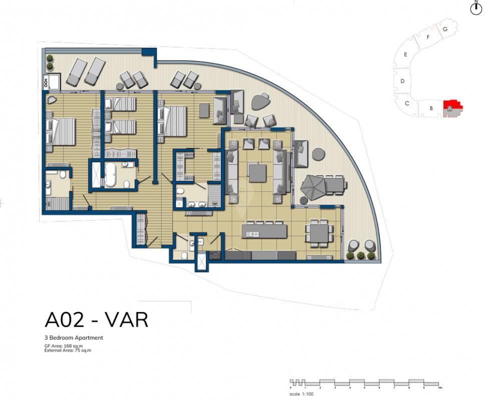 Offered for sale is this 248 square metre three-bedroom Apartment enjoying unobstructed seaviews. Layout in the form of a kitchen, living and dining area leading out onto a stunning 80 square metre wrap-around terrace, three double bedrooms (all with en-suite and master with walk-in-wardrobe), bathroom and utility room.