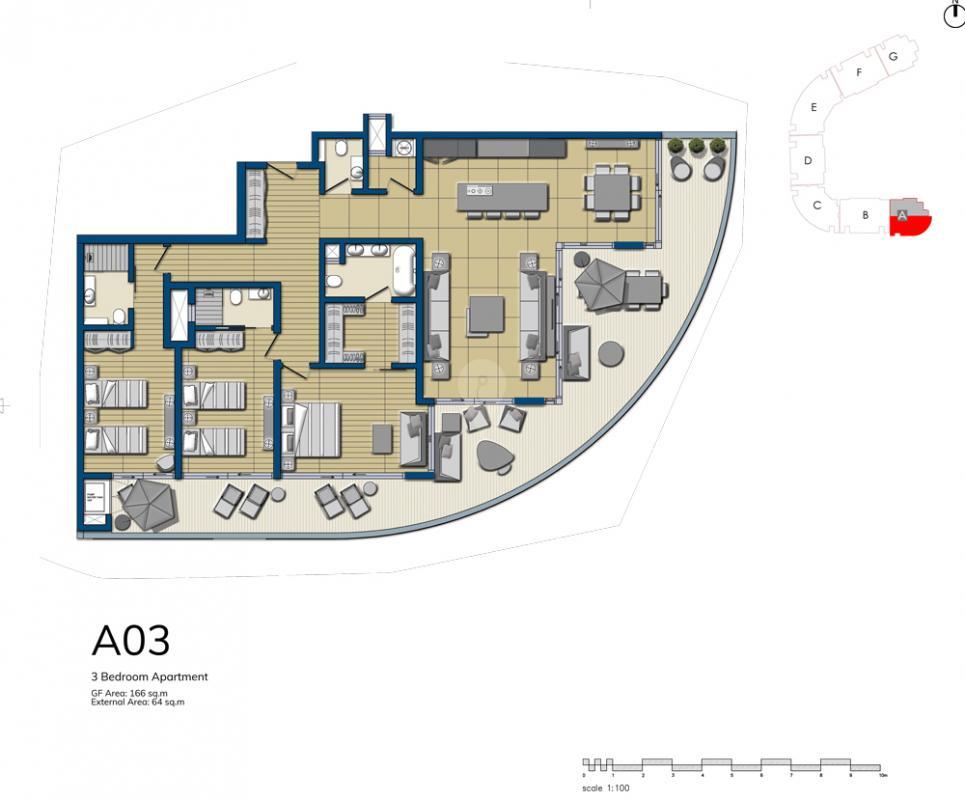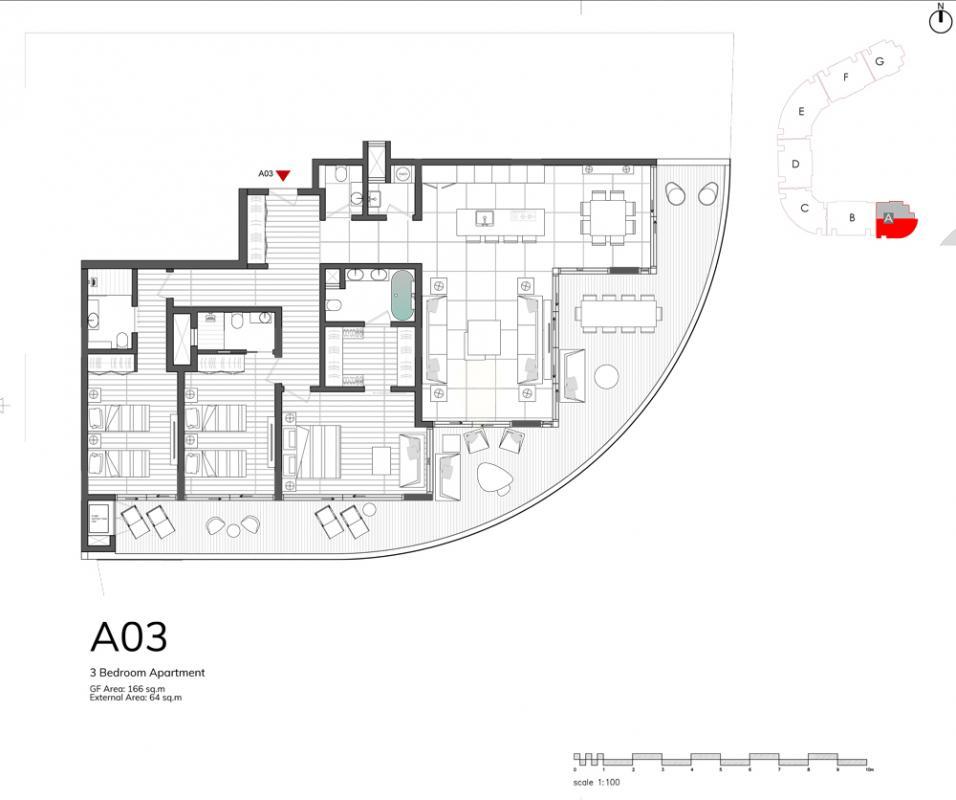 Offered for sale is this 235 square metre three-bedroom Apartment enjoying unobstructed seaviews. Layout in the form of a kitchen, living and dining area leading out onto a stunning 69 square metre wrap-around terrace, three double bedrooms (all with en-suite and master with walk-in-wardrobe), bathroom and utility room.