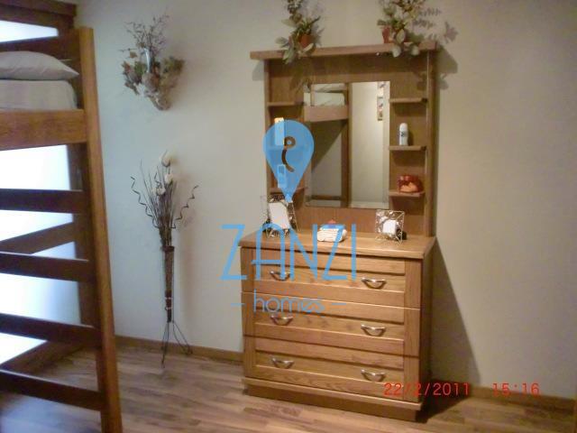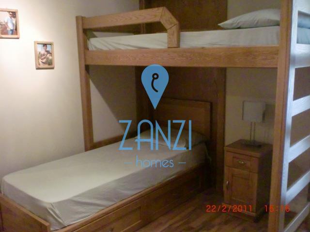 The apartment has three air conditioning units, a solid oak kitchen, and parquet flooring.