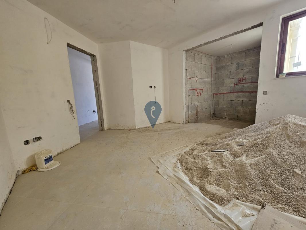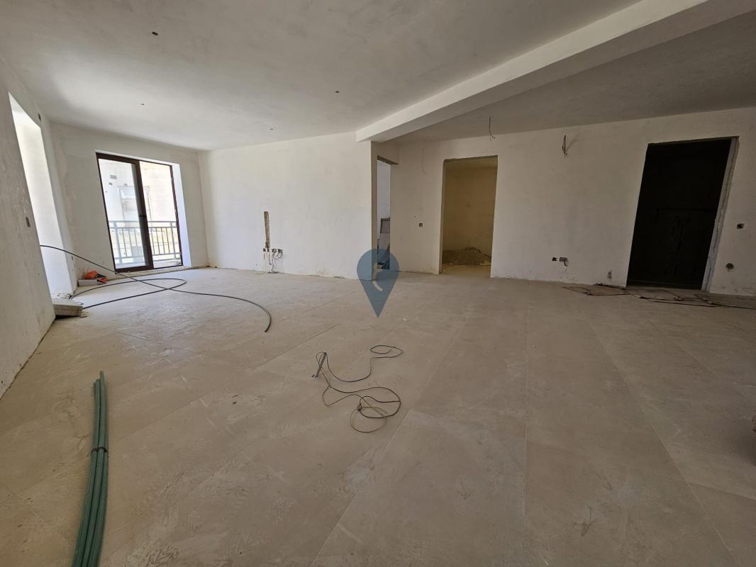 The apartment is offered in a semi-finished state, excluding bathrooms, allowing you to customize the bathrooms to your taste. The price