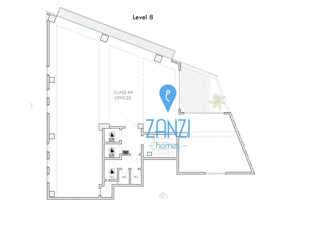 ST. JULIAN'S - New Development in the Heart of St Julian's. Consisting of garage spaces at the basement level, and at the ground-floor level is the reception, waiting area. The commercial office spaces start on the first floor till the eighth floor, which consist of office spaces, having the same layout and measuring 350SQM/floor. The total block area is of 4245sqm, including terraces (on all Floors). All floors are served with rooms that can serve as kitchenettes and WC facilities.