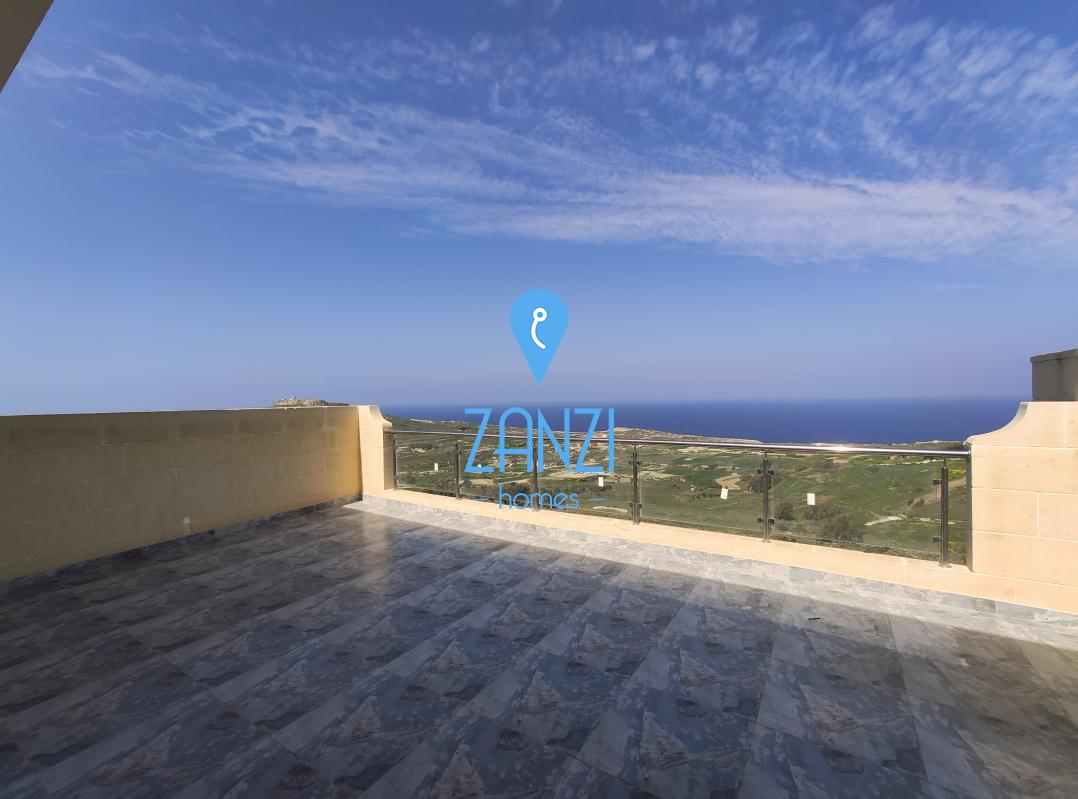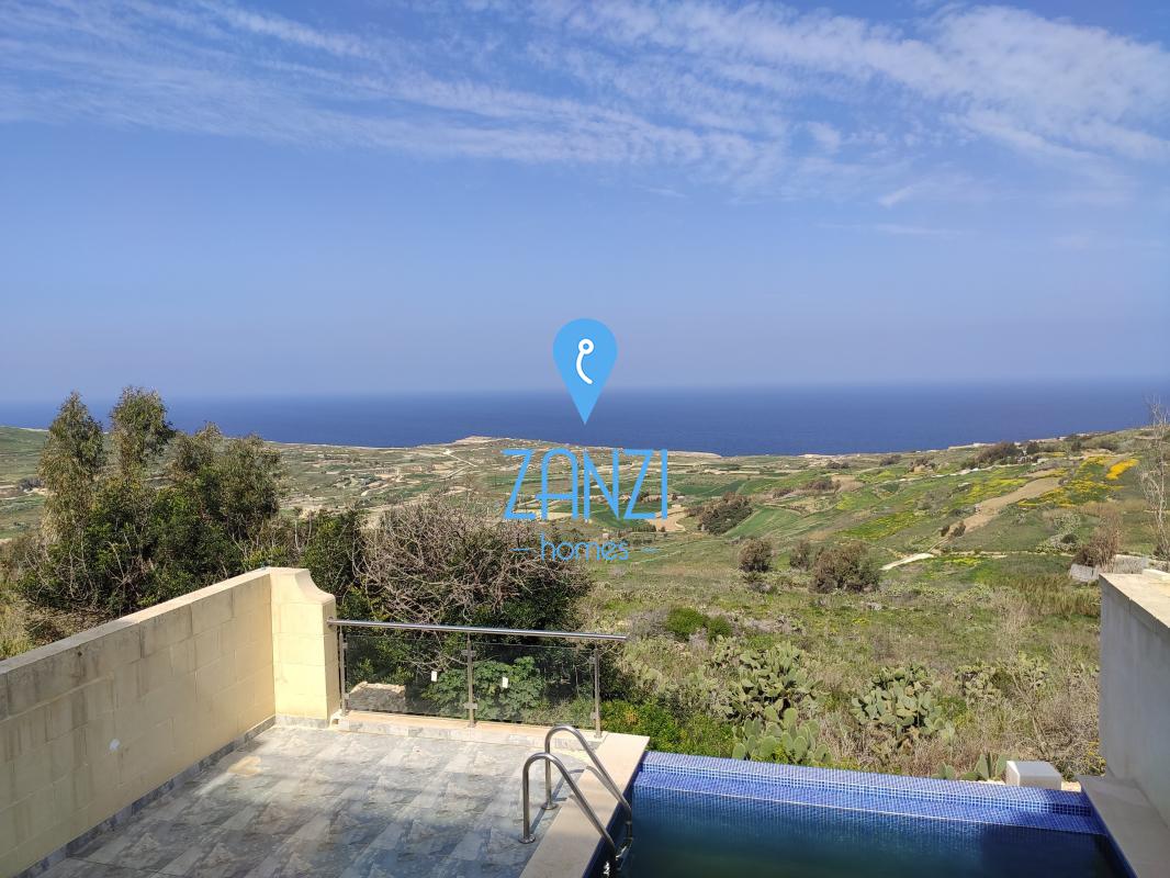 ZEBBUG, Gozo - One of a kind, luxurious terraced house enjoying breathtaking views of the North side of the island. Finished to very high standards. Ground floor comprises a large open plan kitchen / dining / living area overlooking the pool and deck area, guest toilet and a bedroom with en-suite bathroom. First floor consist of a landing area, three bedrooms all with en-suite bathrooms, a front balcony and a back terrace. On second floor is an entertaining area with a back and front terrace. Basement level comprises an interconnected two car garage with ample storage space and a studio apartment with back yard enjoying the same views as that from the higher floors. The property boasts an infinity pool enjoying the view. Freehold.
