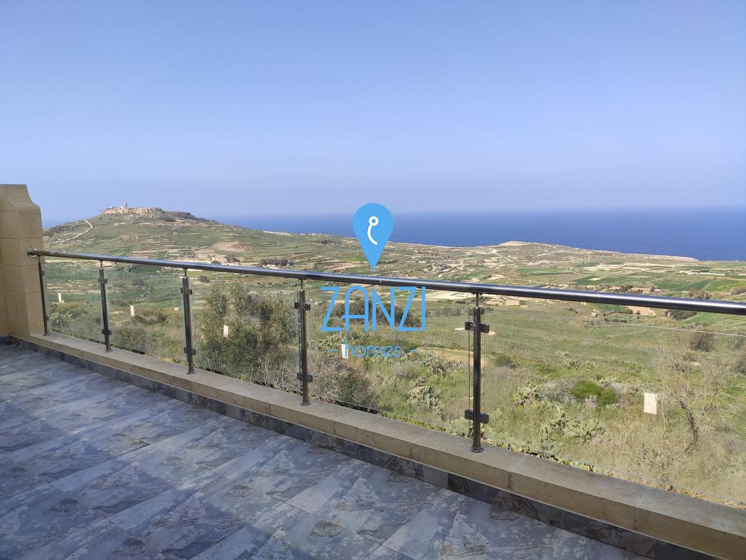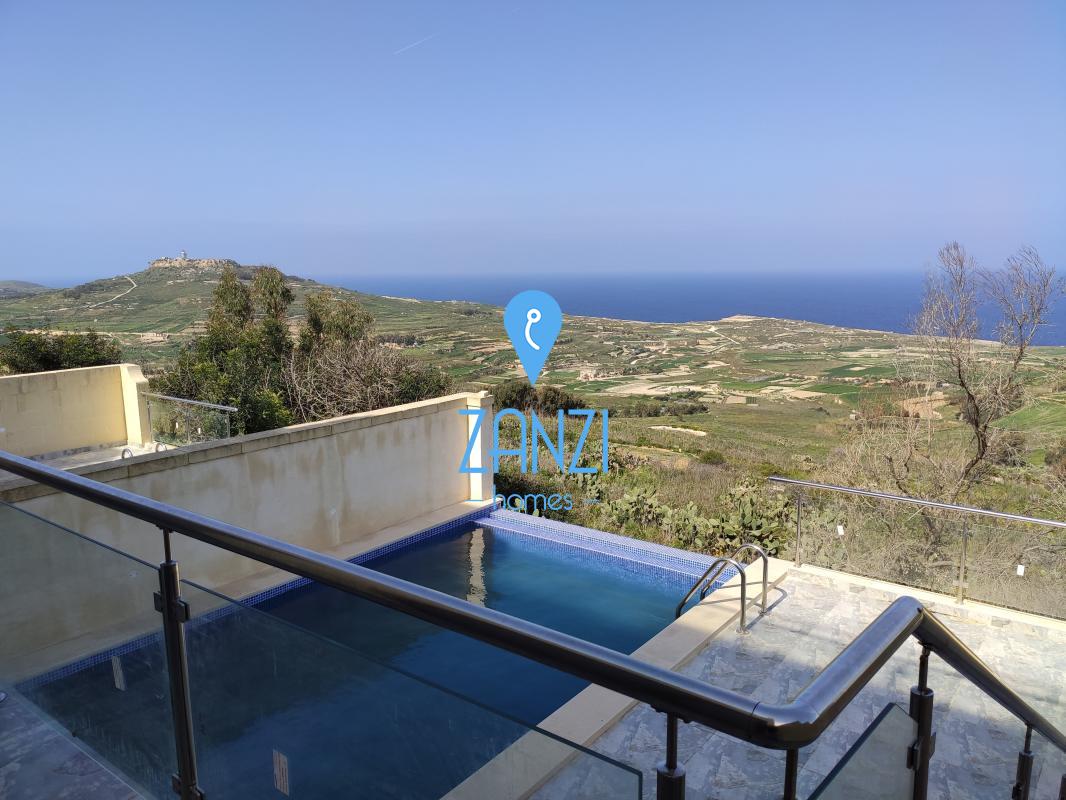 ZEBBUG, Gozo - One of a kind, luxurious terraced house enjoying breathtaking views of the North side of the island. Finished to very high standards. Ground floor comprises a large open plan kitchen / dining / living area overlooking the pool and deck area, guest toilet and a bedroom with en-suite bathroom. First floor consist of a landing area, three bedrooms all with en-suite bathrooms, a front balcony and a back terrace. On second floor is an entertaining area with a back and front terrace. Basement level comprises an interconnected two car garage with ample storage space and a studio apartment with back yard enjoying the same views as that from the higher floors. The property boasts an infinity pool enjoying the view. Freehold.