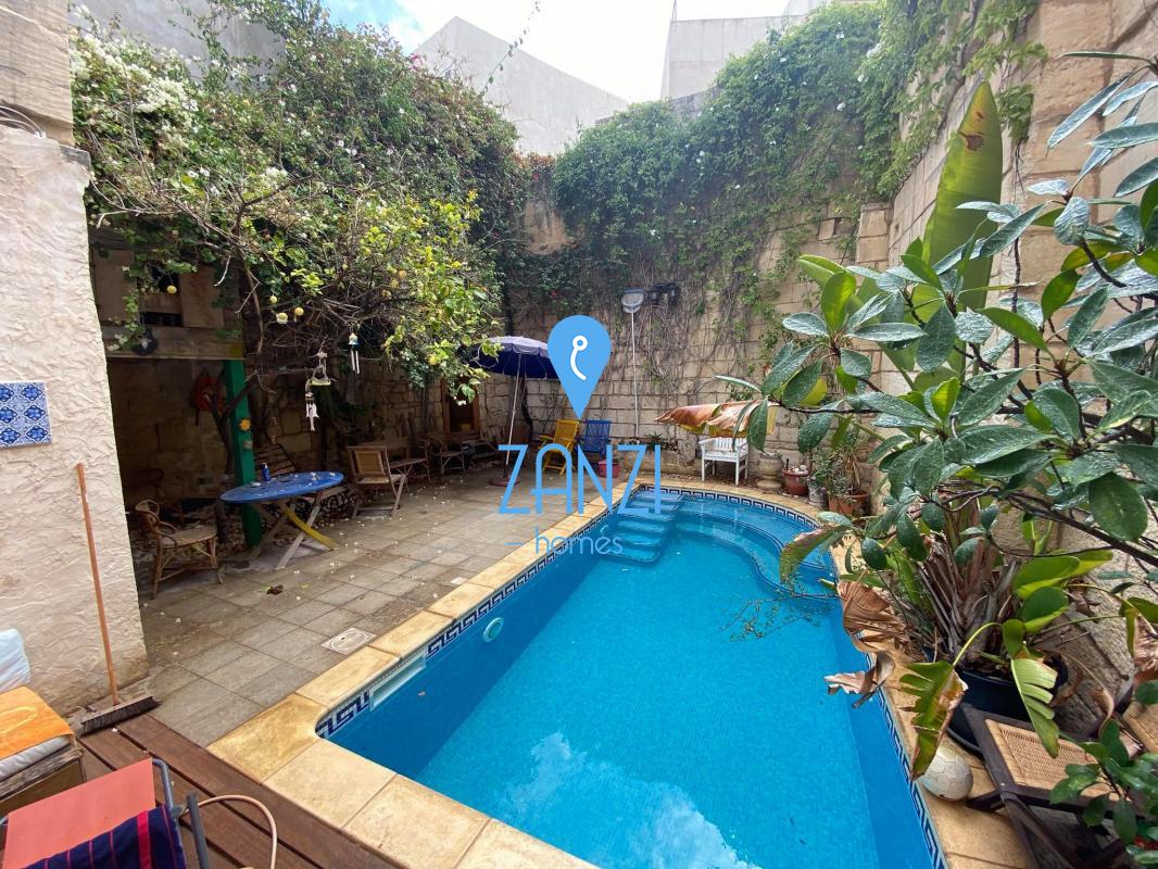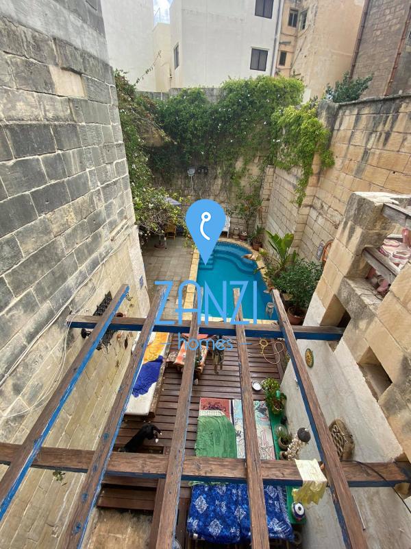 QORMI - Townhouse situated in the village core. Upon entrance one finds a spacious living room including a wood burning fireplace which one can easily turn into a garage, having a 15 course height. Leading to a large kitchen & dining area which overlooks the pool & decking area. One has the option to renovate the pool room measurements. (4 x 4) into a duplex studio which overlooks the pool. First floor consists of two large bedrooms, main with en suite & a small back terrace. On the other side is the 2nd Bedroom which includes a loft & possibility to create an en suite under the loft. On the top floor one finds a washroom currently being used as an office having both front & back terrace which overlooks the pool. FREEHOLD.
