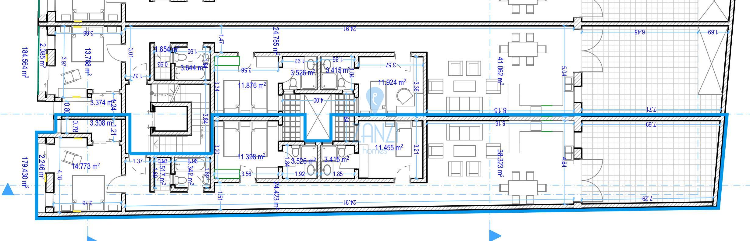 QALA, Gozo - First floor large apartment comprising an open plan kitchen / dining / living area overlooking the back yard, three bedrooms and three bathrooms. Being offered in shell form with finished common parts and lift included in the price. Optional street level garages available. Freehold.