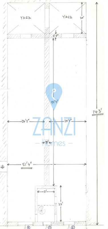 36.09m Deep x 7.38m Wide with a yard 6.1m deep and 7.38m wide