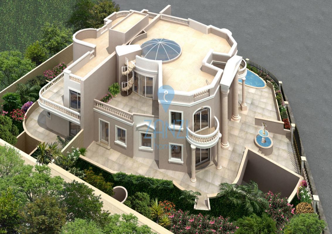 A floating staircase at the center of the property guides visitors to various spacious landings and palatial lounges. The first floor hosts four immense bedroom suites.