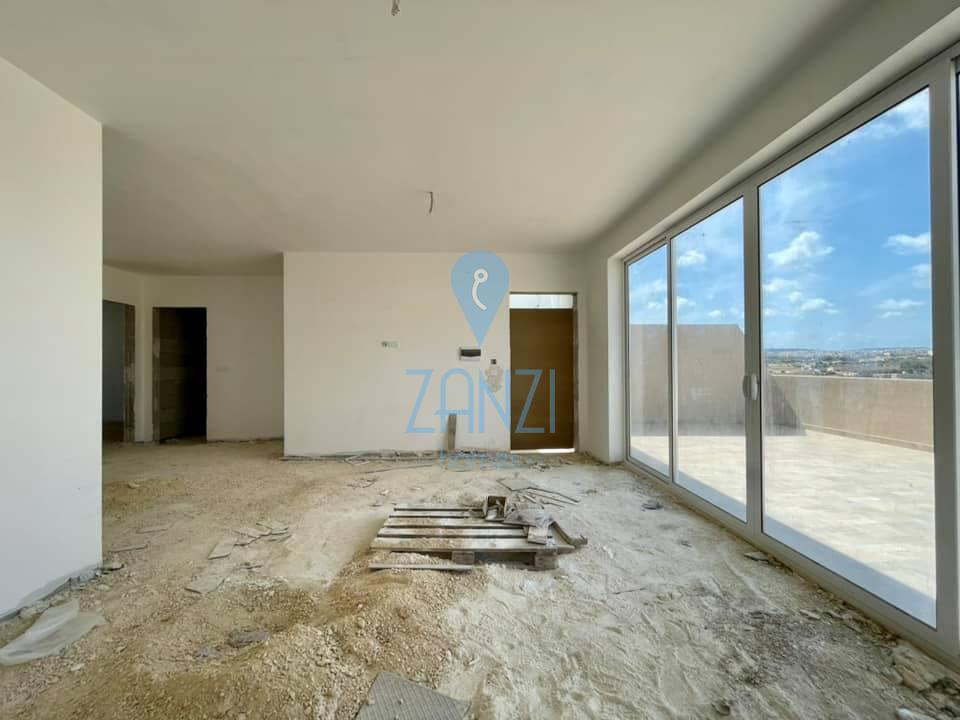 Qormi - Two bedroom Penthouse enjoying stunning country views and an extra large front Terrace. Accomodation consists of an open plan, Kitchen/Living/Dinning area leading onto 2 bedrooms, main having ensuite and main bathroom. Property is being sold in a finished state with airspace.