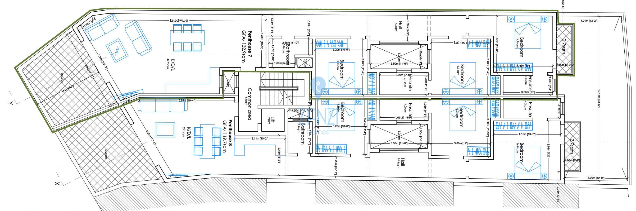 VICTORIA, Gozo - Small development of just eight units on the outskirts of the city enjoying open country and valley views from the front side and overlooking agriculture land and the Citadel from the back side. Third floor penthouse comprising an open plan kitchen / dining / living area overlooking a front terrace, three bedrooms, three bathrooms and a back balcony. Being offered in shell form, served with lift and with its own airspace included in the price. Finishing packages on request. Freehold.