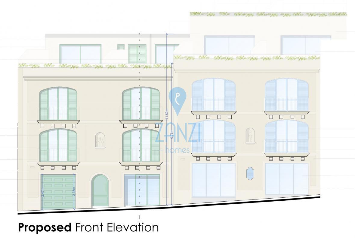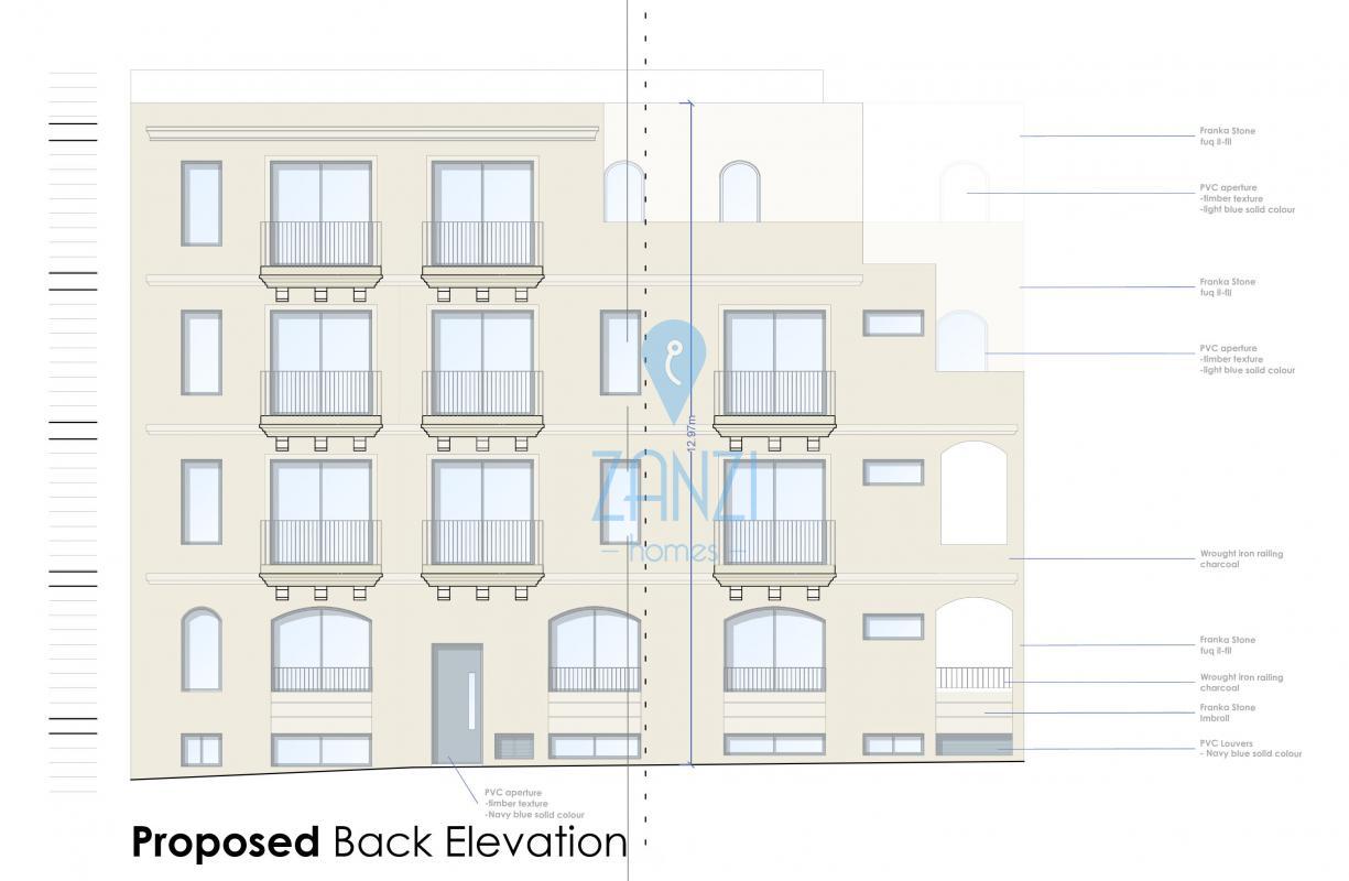 NADUR, Gozo - New development set on a high ridge enjoying valley and channel views. First floor apartment (unit 4) comprising an open plan kitchen / dining / living area, three bedrooms, two bathrooms and a front terraces. Being sold in shell form with finished common parts and lift included in the price. Optional garages at basement level. Freehold.