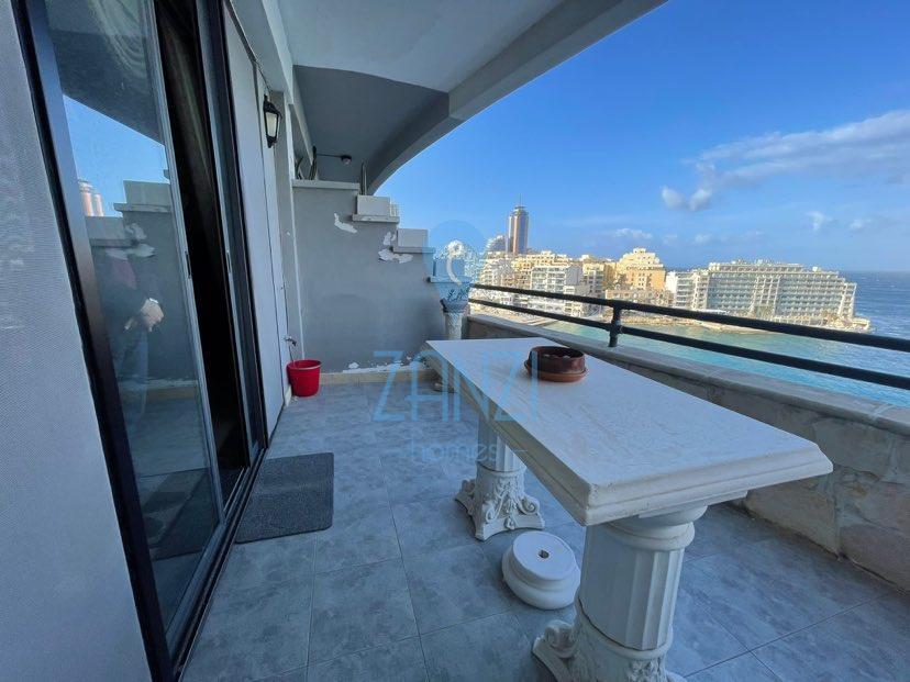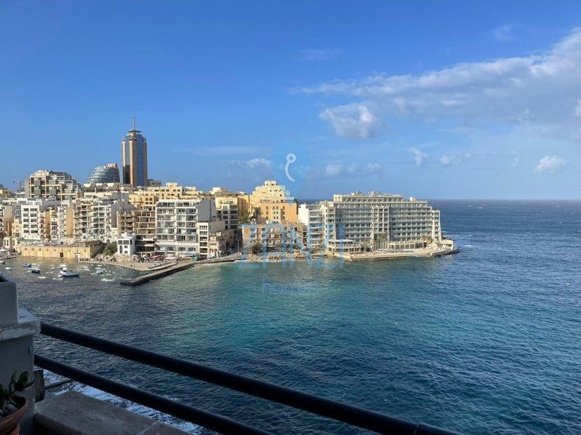 ST JULIANS - Larger than usual three bedroom SEAFRONT APARTMENT being offered in a fully furnished state. Property consists of a massive kitchen, living, dining, leading onto a good sized front terrace enjoying breathtaking sea views, three double bedrooms (main with open bathroom) main bathroom and a back terrace. Property includes interconnecting two car spaces. FREEHOLD.
