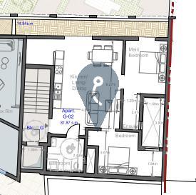 First floor apartment comprising an open plan kitchen / dining / living room, two bedrooms, two bathrooms and a front terrace. Being offered in semi-finished state (including external apertures, front door, tiling of yard and water tank and other finishings) with finished common parts, swimming pool and gardens included in the price. Freehold. Optional garages at ground and basement levels. Finishing packages on request.