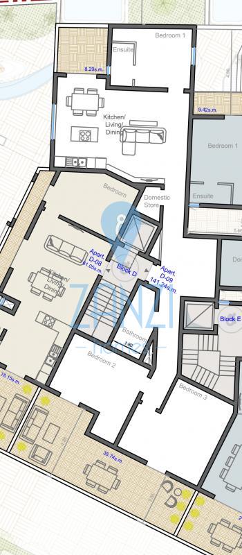 Fourth floor penthouse comprising an open plan kitchen / dining / living room, three bedrooms, two bathrooms, front and back terraces, roof top private pool and terrace. Being offered in semi-finished state (including external apertures, front door, tiling of yard and water tank and other finishings) with finished common parts, lift, airspace, swimming pool and gardens included in the price. Freehold. Optional garages at ground and basement levels. Finishing packages on request.