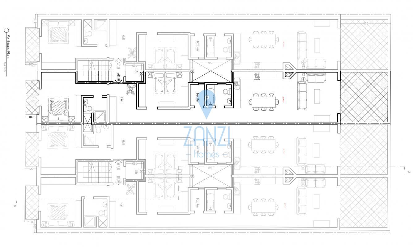 SANNAT, Gozo - New development set in a quiet area of the village at the end of the development zone, enjoying ODZ views from the back terraces. Third floor penthouse comprising an entrance hall, open plan kitchen / dining / living area next to a back terrace enjoying the ODZ view, two bedrooms, two bathrooms, a box room and a front balcony. Being offered in shell form with finished common parts and served with lift. Optional garages at basement level. Finishing packages on request. Freehold.