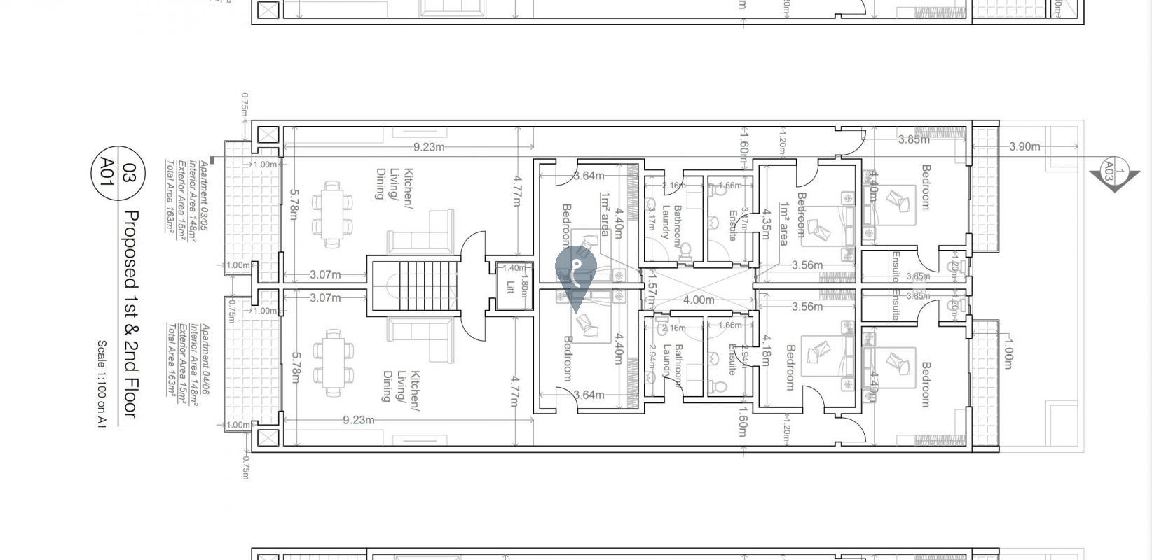 (A5) Layout comprises of an open plan kitchen, living, dining room overlooking a large front terrace, three bedrooms - one with an ensuite, a main bathroom and a back terrace. Being offered in shell form with finished common parts and served with lift. Finishing packages upon request. Optional garage at an additional cost. Freehold.