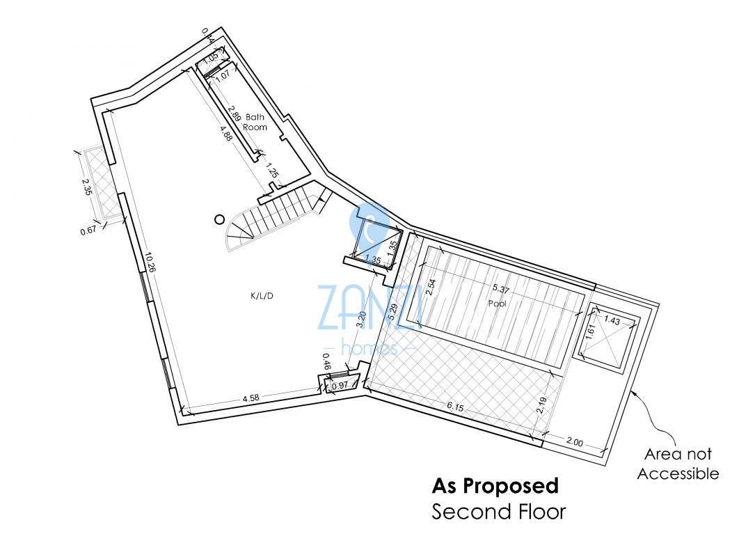 KERCEM, Gozo - Unconverted farmhouse with permits for a five bedroom house with roof top swimming pool. Entrance hall, street level one car garage, open plan kitchen / dining / living area overlooking the private swimming pool and deck area, five bedrooms and six bathrooms. Being offered unconverted. Ideal investment for a B&B. Freehold.
