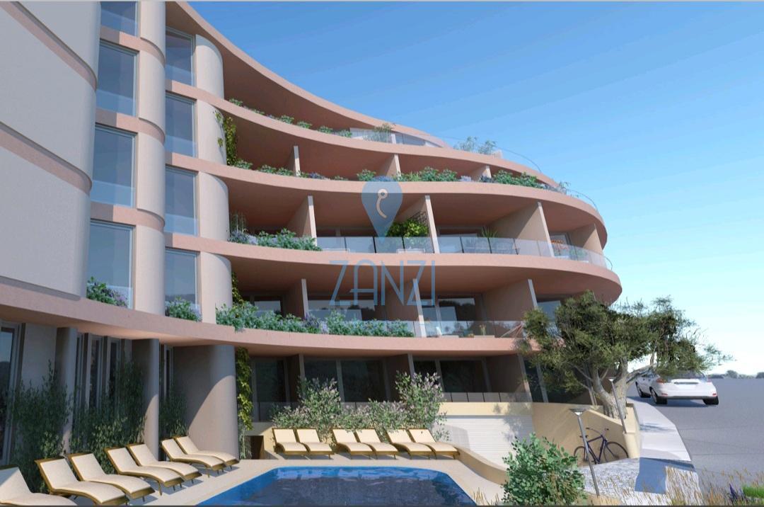 This third-floor level property comprises an open plan kitchen living dining area leading to a nice size front terrace overlooking the breathtaking views, two bedrooms one with an ensuite, and the main bathroom. The project shall feature an outdoor splash pool and an indoor heated pool. These properties will be finished with all common areas including the pool, facade, and all private terraces. All units will be sold in a semi-finished state with an option to be fully finished at an extra cost.