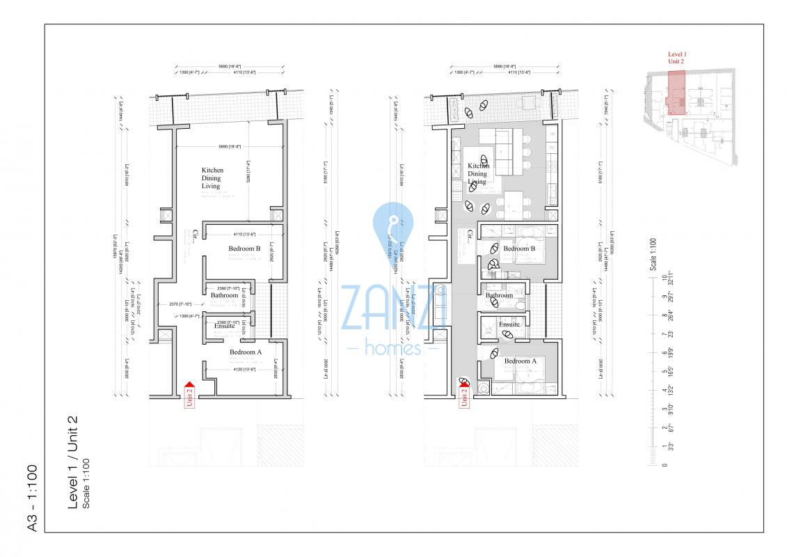 It features two levels of car parking spaces at levels "minus three" and "minus two", a supermarket at level "minus one", a commercial space at level "zero", two and three-bedroom apartments at levels "one" and "two", and penthouses at level three. Level "zero" will also feature a 3300 sqm plant nursery, complete with trees and plants, next to the project.