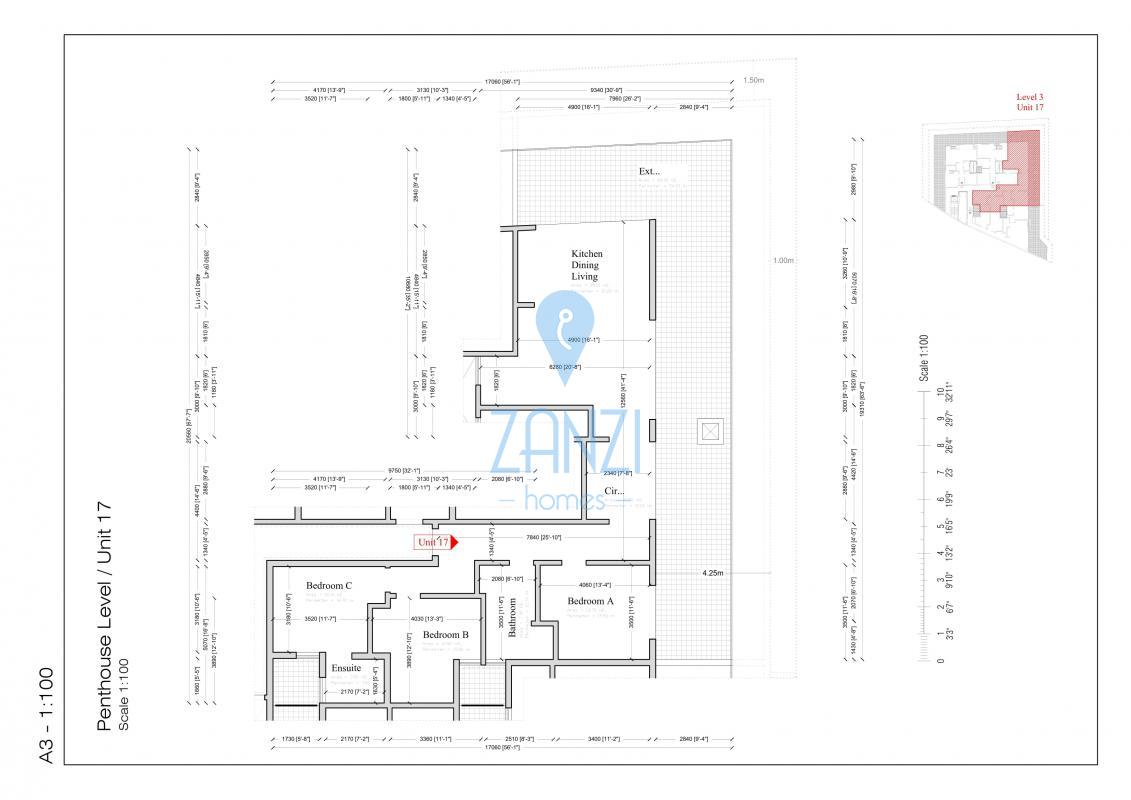 It features two levels of car parking spaces at levels "minus three" and "minus two", a supermarket at level "minus one", a commercial space at level "zero", two and three-bedroom apartments at levels "one" and "two", and penthouses at level three. Level "zero" will also feature a 3300 sqm plant nursery, complete with trees and plants, next to the project.