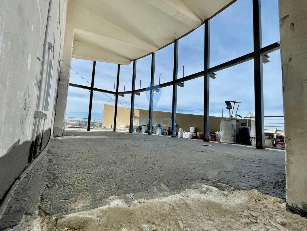 PAOLA - This one of a kind high rise Duplex penthouse has a total of 320 sqm with 360 degrees views capturing breathtaking country views, town views, and distant sea views. This property comprises of a huge open-plan Kitchen/Living/Dining surrounded by glass apertures overlooking a big front terrace that goes all the way around the penthouse with space for a pool or a Jacuzzi and a bbq area. A main bedroom with en-suite and a main bathroom, up a level one can find another two bedrooms with a bathroom. High ceilings all around the property can easily be split into two 160 sqm duplex penthouses Including roof and airspace. Offered semi-finished.