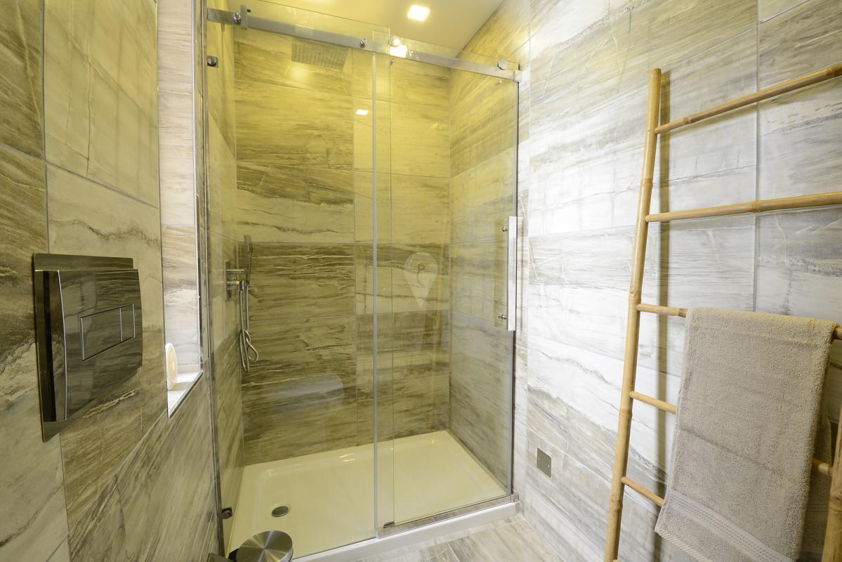 The hallway with its large windows and good-sized shaft leads to a bathroom with a walk-in shower, a master bedroom with a private en-suite, a spare double bedroom, a study room (which can also serve as a third bedroom), and a utility room equipped with a washer-dryer. And if that wasn't enough, you'll also have access to a shared roof space with breathtaking views, perfect for entertaining.