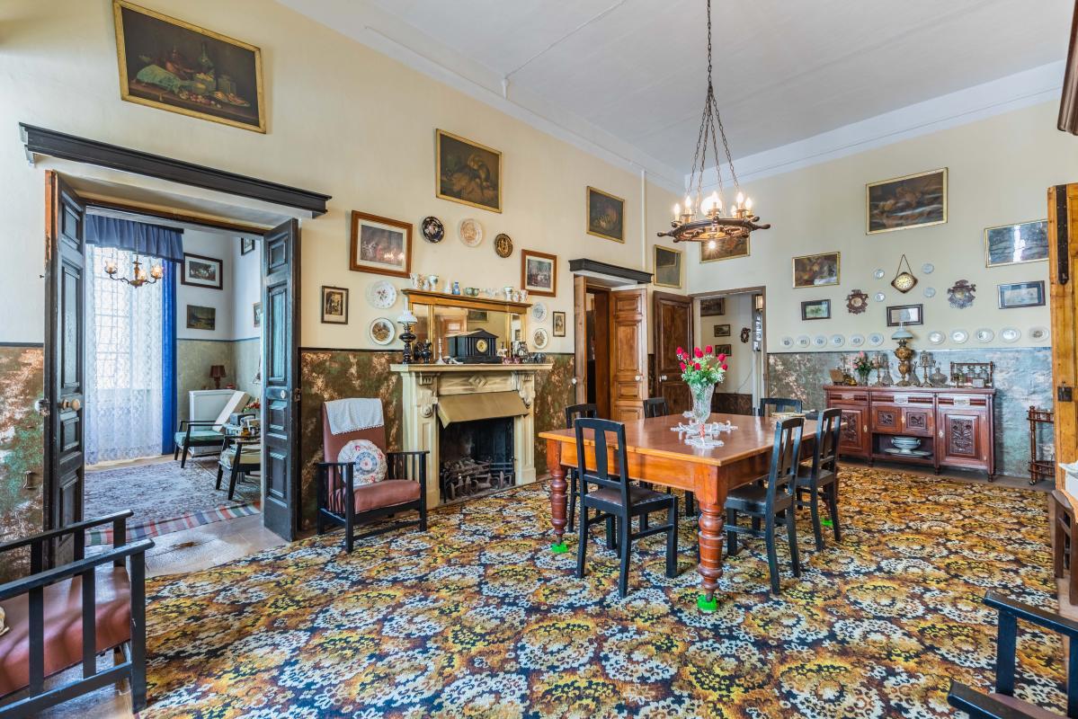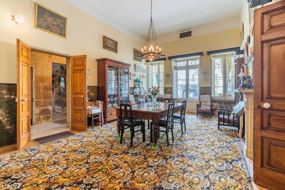 Boasting wrought iron balustrades, flagstone flooring, large wooden balconies, authentic spiral staircases, original wooden apertures, impressive frescos and murals throughout, imposing main stairwell having its own in-designed frescos, a large underlying war shelter, as well as a large arched typical cellar well-lit and aerated beneath the full house area, are just a few of the beautiful features this house offers, throwing you way back in time. The architectural plan is unique and can be seen in various areas of the house and spells out perfection, and attention to minimal detail which one can only experience to understand the cumbersome work involved in the building of such a gem! Being a large property, it offers ample light and space on every floor and the symmetry throughout every room provides comfort, luxury, and practicality in its flow. Accommodation is split between the casual and formal quarters, including such thought as a popular smoking room back in time, interconnected to a 40 sqm formal dining room overlooking the outdoor area.