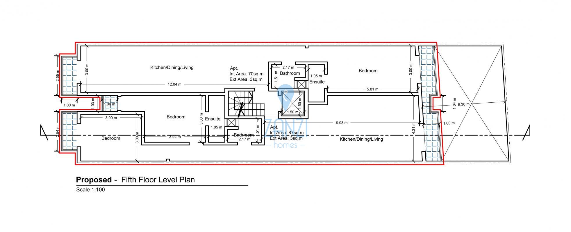 GZIRA - New on the market and located meters away from the Seafront and 14 East Tower is this, On Plan, fifth Floor, One-Bedroom Apartment with a Front and Back Balcony. The property will consist of a large open-plan Kitchen/Living/Dining leading to a Front Balcony, One-Large Double Bedroom with an en-suite, the main bathroom, and a back balcony.
