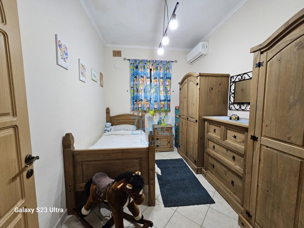 XGHAJRA - Maisonette Three bedrooms, two bathrooms one with a jacuzzi and one with a shower. Kitchen-living dining rooms nice entrances, and a box room for a washing machine and tumble dryer. Three air-conditioning units one in each bedroom. Two yards. To be sold fully furnished apart from personal belongings . Optional garage - will sell only with the maisonette. Only a few minutes away from the sea.