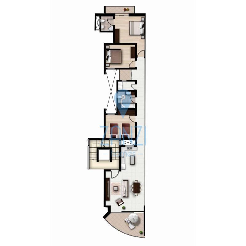 Fourth-floor, three-bedroom, two-bathroom apartment with spacious open-plan kitchen/dining/living room, front terrace, and back balcony enjoying the view. Being offered fully finished and served with lift. Freehold.