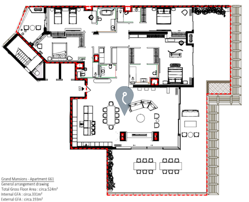 On average, the units in the Royal Mansions have an area of 220 sqm, while those in the Grand Mansions have an area of up to 330 sqm. The layout, views, and prices of each unit differ from one another.