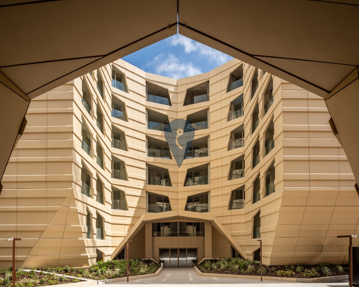 The mansions are covered with innovative cladding made of ultra-high-performance concrete (UHPC).