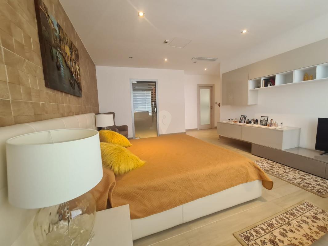 SLIEMA - A luxurious and designer-finished, top floor Apartment with stunning sea views, extending all along the coastline, towards Valletta and beyond. The property comprises an entrance hallway, a spacious kitchen/living/dining area surrounded by large bay windows overlooking the seafront as well as a front spacious spectacular terrace for entertainment, or simply enjoying a peaceful sunrise or sunset. Four double bedrooms, a master bedroom complete with a walk-in closet and an en-suite, and two bathrooms. All four bedrooms enjoy television units and LED-lit wardrobes. Furthermore, this five-star accommodation includes an outdoor sound system, automated blinds throughout, a smoke detector, and a designer fire place. Highly finished with soffits throughout and fully VRF system air-conditioned. Situated in one of the best areas of the Sliema Promenade, you will be able to take advantage of seaside walks, beach clubs, gyms, shopping malls, restaurants, and more. Not to be missed! FREEHOLD