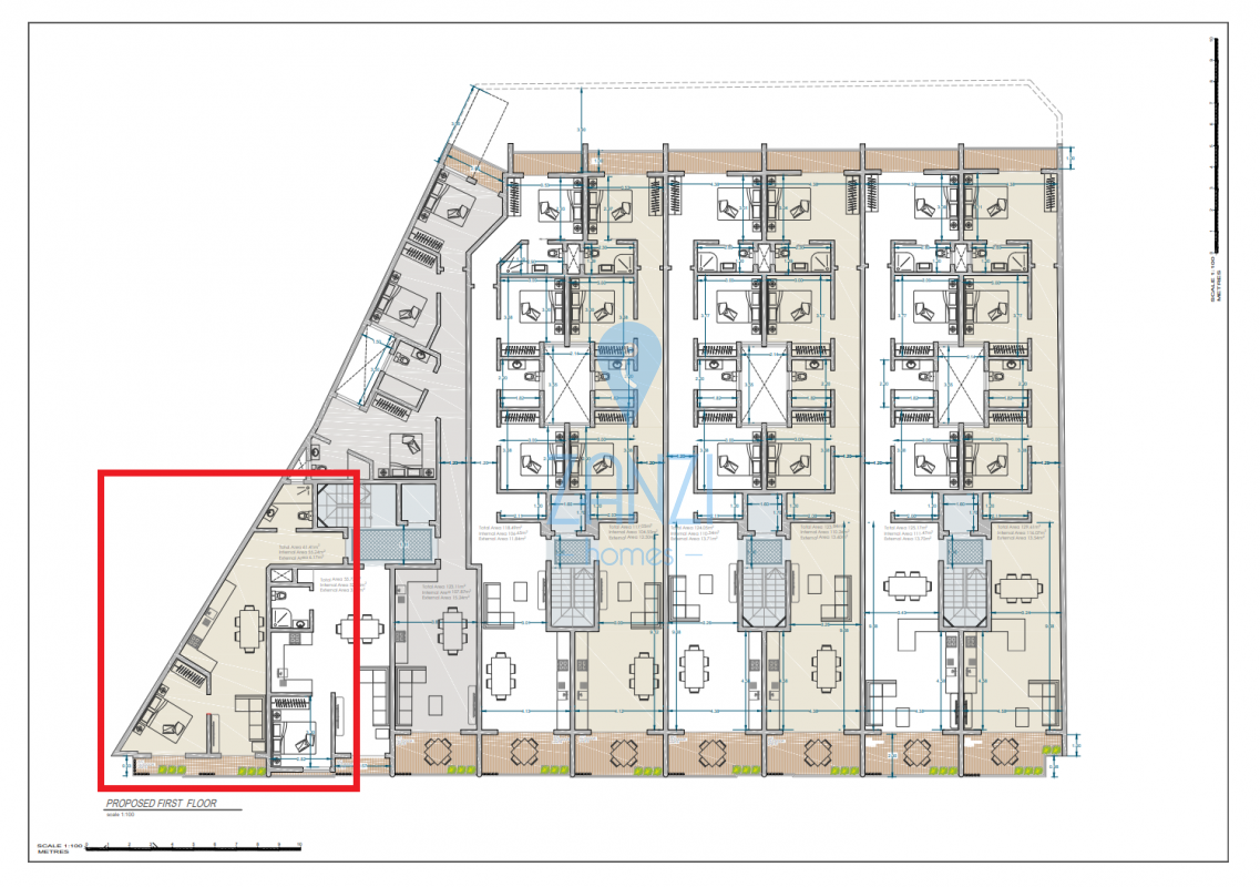 TARXIEN - A first-floor one-bedroom one-bathroom APARTMENT being offered in a shell form state with common parts ready. The property consists of an open-plan kitchen/living/dining, leading onto a front balcony, one double bedroom (with access to the balcony), and a main bathroom. Optional garages are available as well. Being offered FREEHOLD.